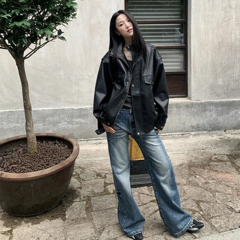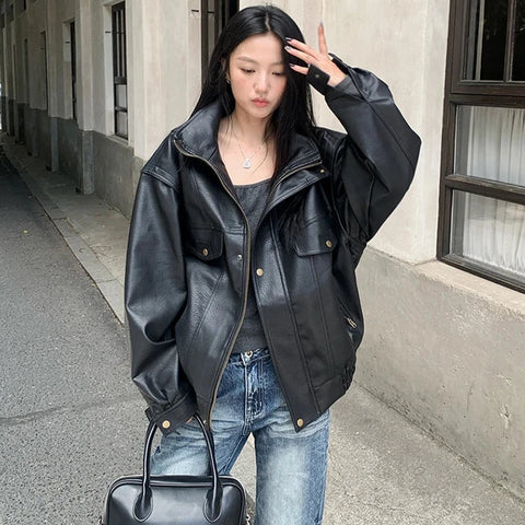 Stay effortlessly cool in the Addie Faux Leather Bomber Jacket! With its oversized, boyfriend fit and sleek faux leather finish, this jacket adds a bold, playful edge to any outfit. This basic yet timelessly chic and cool moto jacket is perfect for layering, it keeps you comfy while turning heads wherever you go.