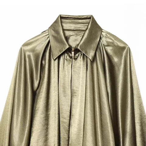 Bring fun flair to your wardrobe with the Ingrid Ruched Satin Bomber Jacket. Its silky textured satin shine and stylish ruching add a playful twist to a classic bomber silhouette, making it the perfect jacket to brighten up any outfit with a touch of cool confidence.