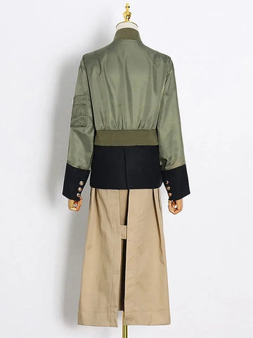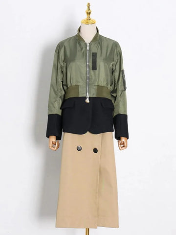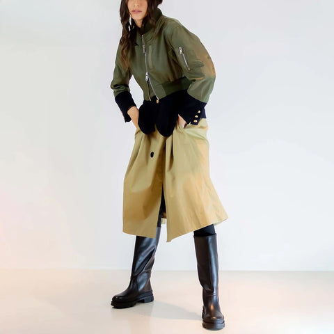 The Mende Bomber Jacket Patchwork Trench Coat fuses the classic trench’s sleekness, the sharpness of a layered velvet blazer, and the bold vibe of a modern bomber—all in one daring piece. Its striking patchwork details inject a fearless edge, delivering texture and depth that demand attention. Designed to fuse comfort with cutting-edge style, this coat transforms your outfit into a confident statement, perfect for layering when the temperature drops and you're ready to stand out.