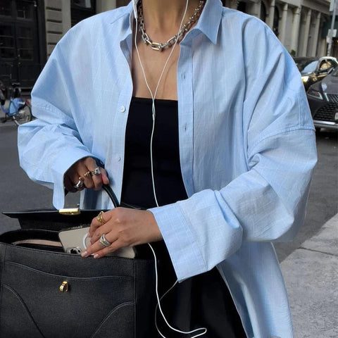 Meet your new wardrobe MVPs: the Herin Basic Oversized Dress Shirts, available in crisp blue and classic white. These roomy shirts bring a relaxed vibe to your everyday style, effortlessly combining comfort with cool. Whether tucked in or left loose, they’re perfect for adding a playful twist to any outfit.