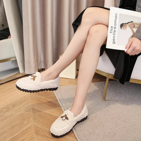 Step into cozy charm with our Bees Charm Faux Lambs Wool Driving Loafers. These snug loafers blend soft faux lambs wool with a fun bee detail, perfect for driving or casual days. Comfy and cute, they’ll keep your feet warm while adding a playful buzz to your look. Get ready to glide through your day with style and comfort!