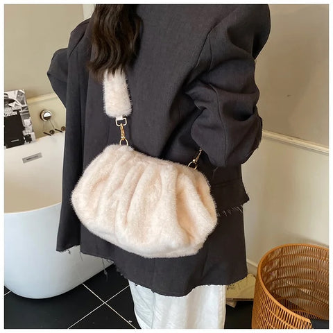 Bianca Faux Mink Ruched Pouch Bag — Soft, Chic & Effortlessly Cozy