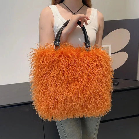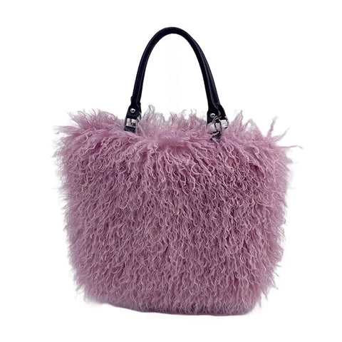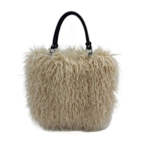 ✨ Margo Mongolian Faux Fur Tote Bag – Shaggy Winter Statement