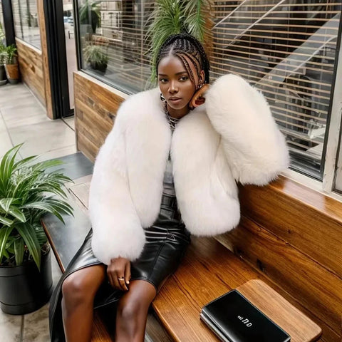 Selene Faux Fox Fur Jacket – Luxe Soft-Focus Winter Glamour