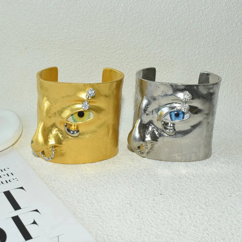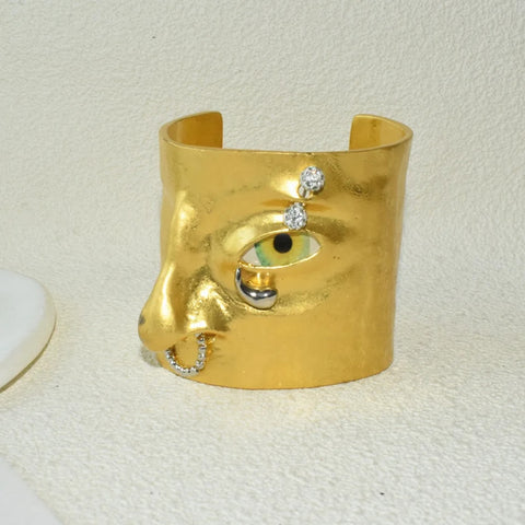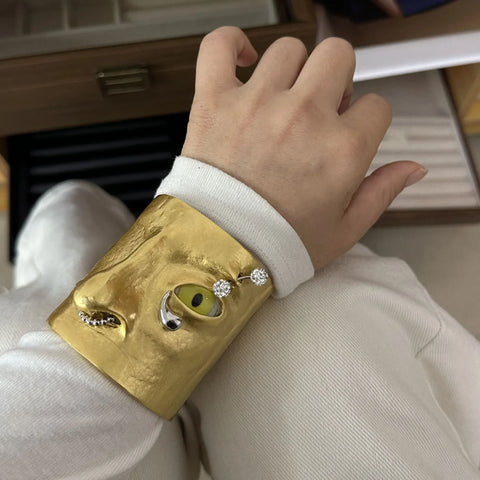 Add a quirky twist to your accessory collection with the Muro Face Figure Cuff Bracelet. This playful cuff features a unique face design that sparks conversation and shows off your fun side. Its bold, artistic style makes it the perfect statement piece to brighten any outfit with a dash of whimsy.