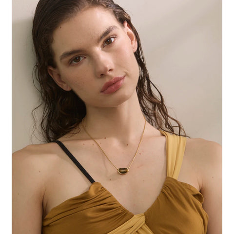 Channel earthy elegance with the Solana Tiger’s Eye Pendant Necklace, a modern piece that radiates confidence and calm. The smooth, half-moon tiger’s eye stone shimmers with golden-brown hues and natural striations, symbolizing protection and grounding energy. Set in a polished gold bezel and suspended from a refined box chain, it adds a touch of natural sophistication to any look.