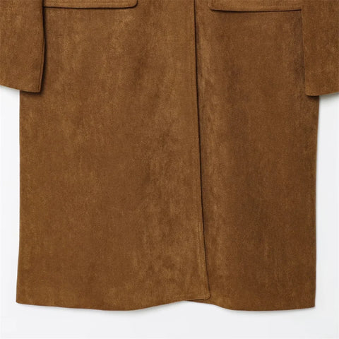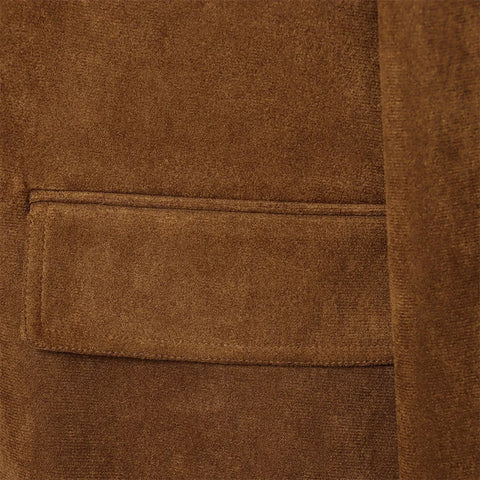 Meet Estella, a refined velour coat that blends understated luxury with a touch of sparkle. Crafted from a soft faux-velour polyester blend in rich brown hue, this coat offers a smooth, velvety handfeel with a structured drape—perfect for elevating everyday looks without the weight of wool.