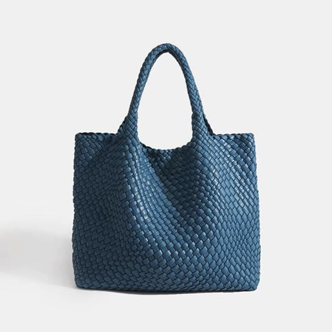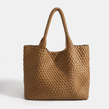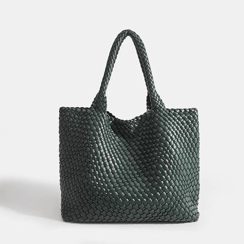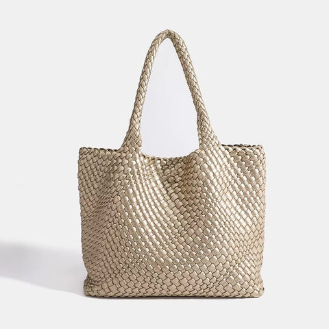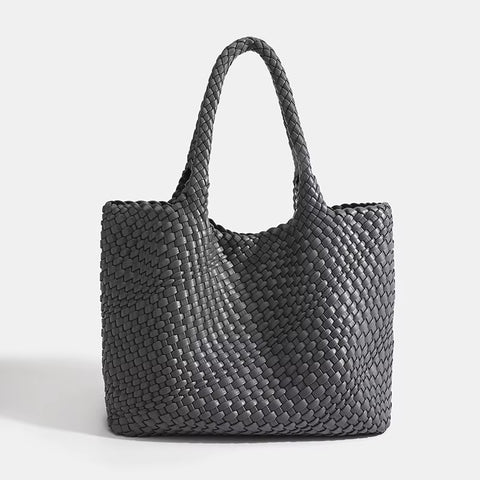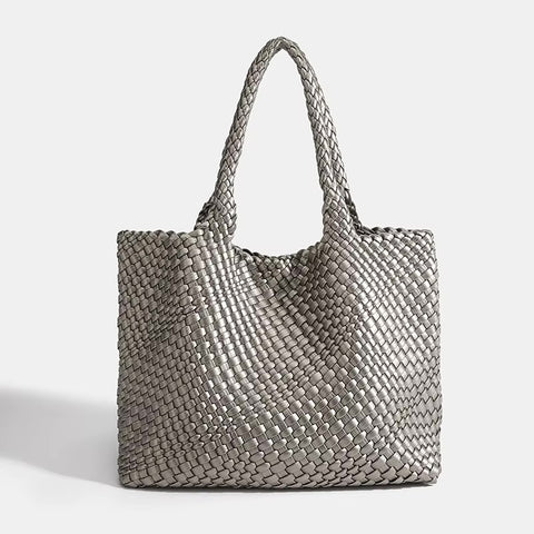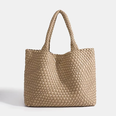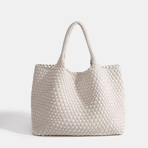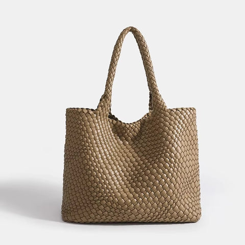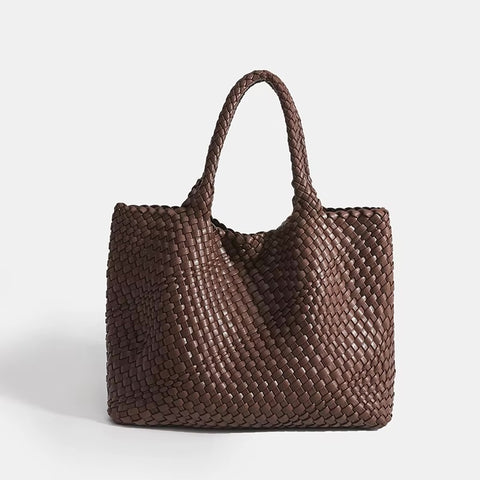 Shop Woven Leather BagsThe Eivissa Faux Leather Woven Medium Tote combines style and practicality with its premium vegan leather and hand-woven design. This medium to large sized shoulder bag is perfect for everyday use with woven straps, offering both durability and elegance. It includes a zipped inner pouch to keep your essentials secure and organized, making it a reliable companion for your daily activities.
