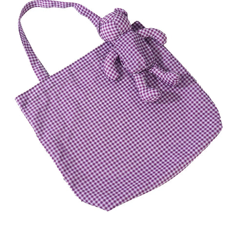 Plaid Nylon Bear Charm Eco Tote is your perfect sidekick for grocery trips or anytime you need an extra hand. Lightweight but tough, this waterproof nylon tote carries 15-20 kg and folds neatly into an adorable bear charm for your keychain when not in use. Making life simpler—and a lot cuter!