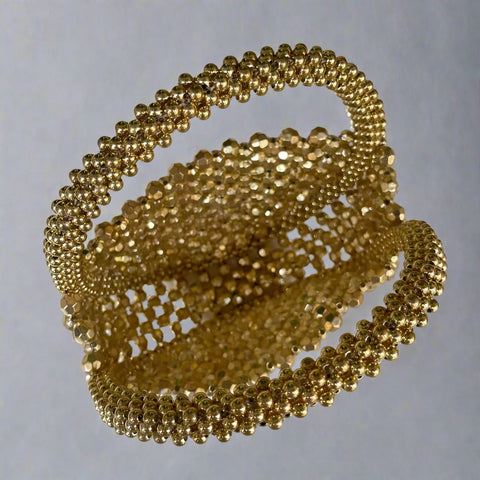 Shine bright with the Margot Metallic Beaded Half-moon Mini Tote! This playful mini tote dazzles with shimmering beads and a unique half-moon shape, making it the perfect statement piece for any outing. Compact yet eye-catching, it adds a touch of sparkle and fun to your everyday style.