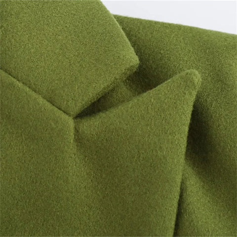 The Ines Autumn Woolen Maxi Coat wraps you in cozy luxury with its soft wool fabric and chic longline style. Ideal for crisp days, it keeps you warm while giving your look a fun, flirty twist and bringing sone fresh green to your day. A playful must-have to brighten up your autumn wardrobe.