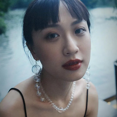 The Casey earrings capture light with every movement. Cascading clear glass orbs shimmer with a soft, oil-slick iridescence, creating a dreamy glow that feels both modern and romantic. Long and fluid in silhouette, they frame the face beautifully—effortless by day, luminous after dark. Designed to feel light, reflective, and quietly striking.