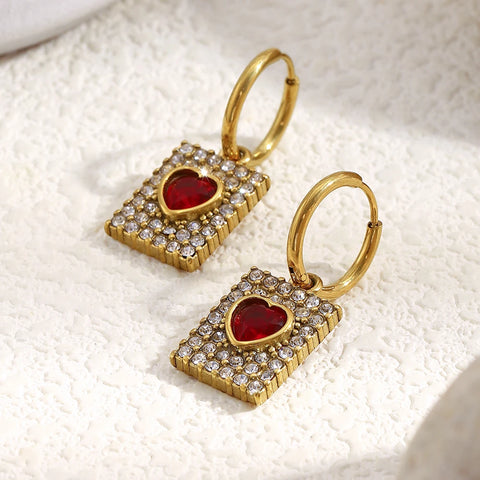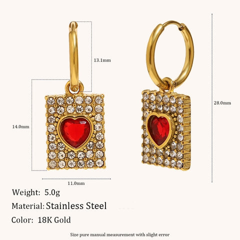 Omena Square Heart Crystal Hoop Earrings - Sparkling Passion