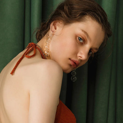 Enhance your style with the Seria Glass Bulbs Drop Earrings. Featuring clear resin glass bulbs that hang gracefully, these earrings bring a polished and elegant flair to any ensemble. Their sleek drop design blends delicate translucence with classic sophistication, ideal for daily wear or special events. Light in weight and exquisitely stylish, they offer a touch of refined luxury to complete your look.