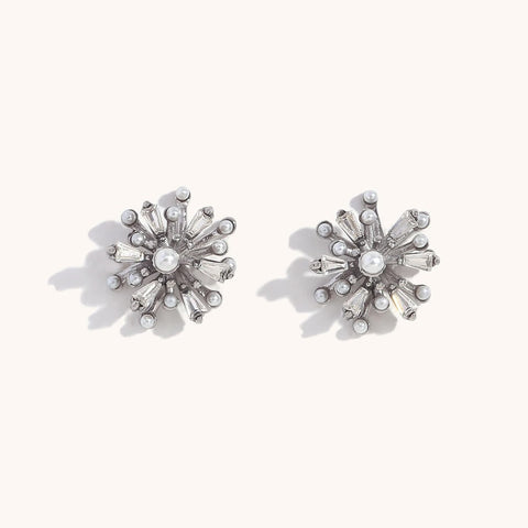 Seria Pearl Cubic Zirconia Fireworks Stud Earrings