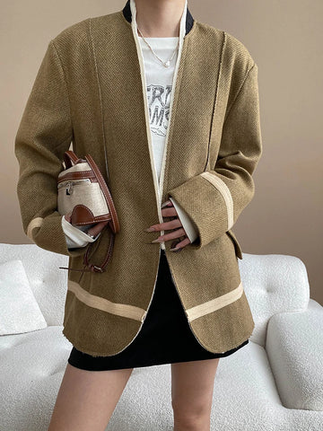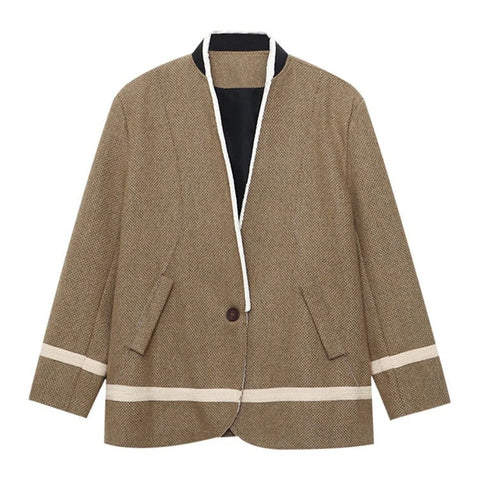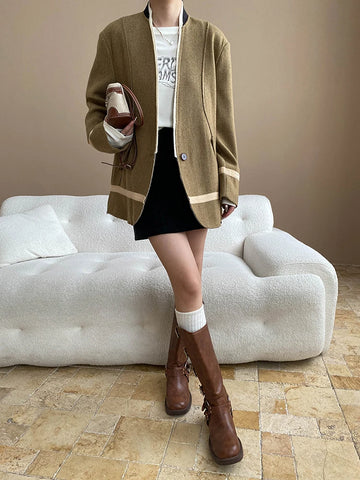 Bring cozy vibes with a sporty twist in the Jules Sporty Stripe Woolen Knit Blazer. Soft woolen knit fabric keeps you warm while dandy stripes add a fun, athletic edge. Whether you’re hitting the streets or office in style, this blazer makes comfort look effortlessly cool and playful.
