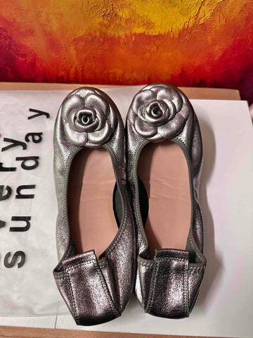 Camellia Genuine Leather Slip On Ballet Flats - Silver Gray/US 9