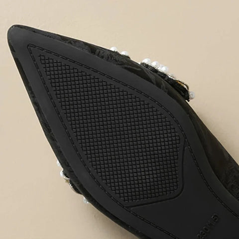 Step out in style with the Catrina Mules, where classic charm meets a playful twist. Made from shiny silk satin brocade, these pointed-toe slip-ons sparkle with hand-placed pearls and beads arranged like a tiny crown on the vamp. The soft cushioned soles and backless design make them as comfy as they are chic. Ideal for weddings, parties, or adding a dash of glam to everyday looks, the Catrina Mules bring a little fun and a lot of elegance to your wardrobe.