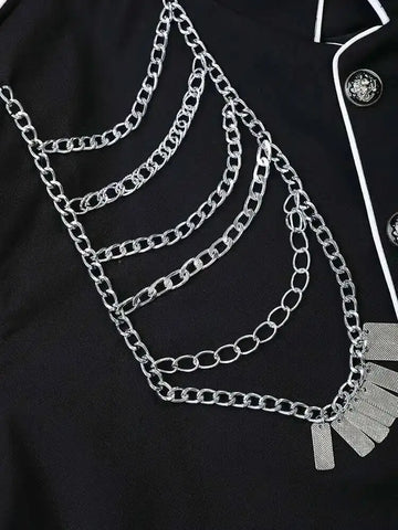 Add edge to your wardrobe with the Inka Chain Embellished Military Bomber Jacket! This jacket combines tough military style with sparkling chain details for a bold, standout look. Perfect for layering on cool days or making a statement on the go, it’s the perfect mix of fierce and fun to boost any outfit’s personality.