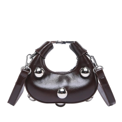 Mini in size but big on style, the Milli Studded Micro Bowling Crossbody Bag is your perfect playful companion. Decked out with edgy studs, it adds attitude while keeping your essentials close. Lightweight and easy to carry, this bag turns heads and makes every outing a fun fashion statement.