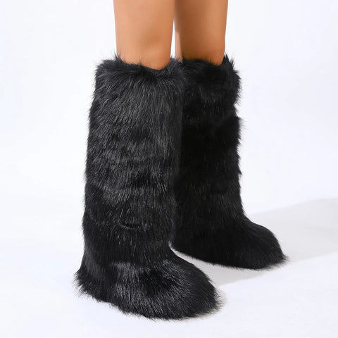 Essia Shaggy Faux Fur Over The Knee Boots - Alpine City Vibe