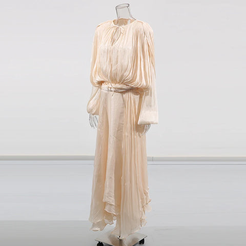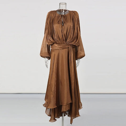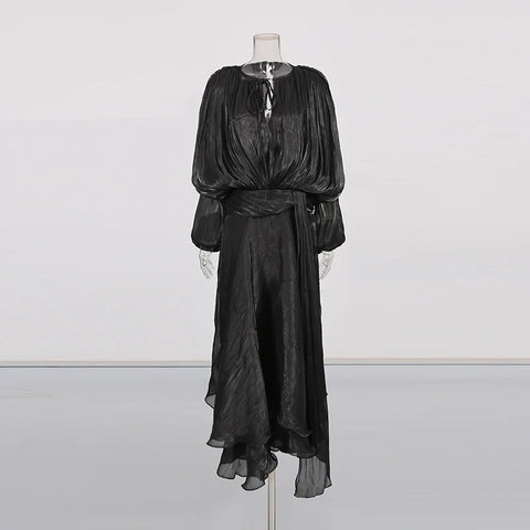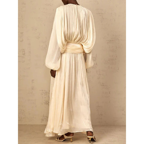 The Heran dress is your ticket to feeling absolutely fabulous. Soft pleated chiffon hugs and flows in all the right ways, while a long wide tie waist for style versatility. Those dreamy lantern sleeves? They're basically giving romantic goddess energy. The tiered hem adds movement and intrigue with every step, making even a simple walk feel like a grand entrance. Designed for anyone who wants to radiate elegance without the fuss—because looking this good should feel effortless.