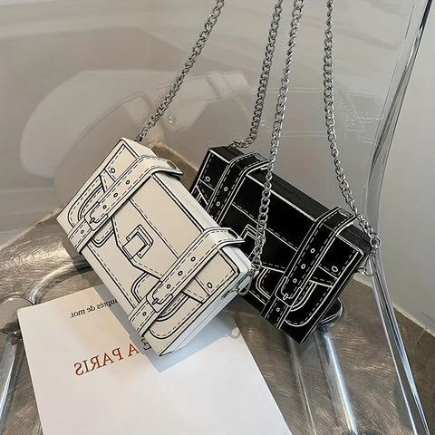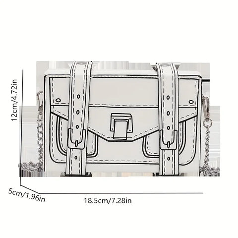 Mia is a fun graphic statement in miniature form. Designed with a 2D illustrated satchel motif, this structured mini bag blends playful charm with modern edge. Finished with contrast stitching prints strap details and a sleek chain strap, it’s the kind of piece that feels artful yet effortlessly wearable—perfect for elevating everyday looks or adding personality to any look.