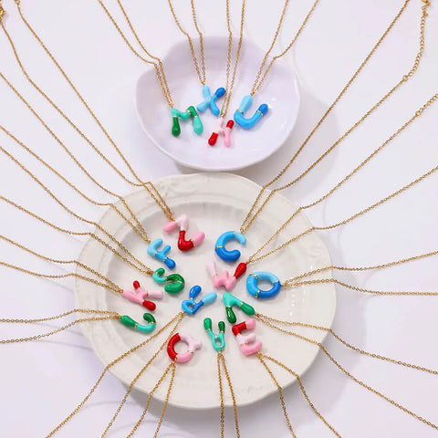 Bring a burst of joy to your style with these Colorful Resin Initial Letter Necklaces! Each piece showcases a bright resin letter accented with a golden lines, ideal for flaunting your initials or giving a unique, personalized gift. Light and striking, these necklaces are perfect for stacking or wearing alone to add a cheerful splash of color to any ensemble.