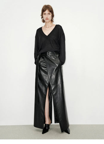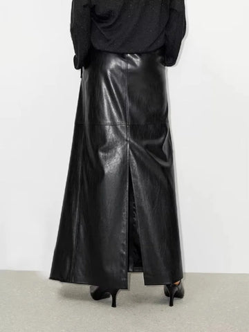 Dasia Faux Leather Maxi Skirt – Sleek, Sculptural, Modern