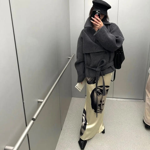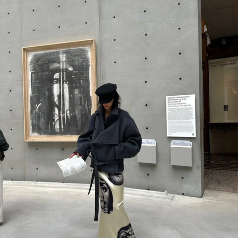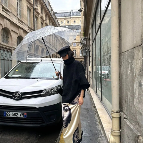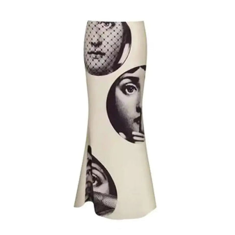 Bring art to your outfit with the Jein Chic Arts Portrait Print Satin Skirts. Featuring sleek black and white portrait prints on smooth satin fabric, these skirts dance with playful elegance and a touch of whimsy. Perfect for adding a splash of creativity and charm to your everyday style.