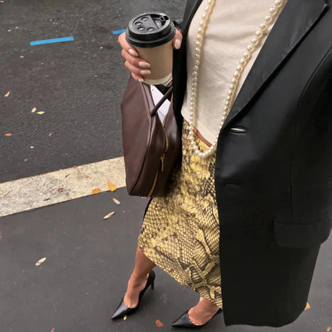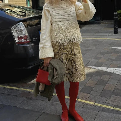 Slide into fierce style with the Teomi Snakeskin Print Pencil Skirts! These skirts hug your curves with a sleek pencil silhouette while rocking a bold yellow snakeskin print for a wild, playful vibe. Perfect for turning heads at work or a night out, they effortlessly mix sophistication with a touch of attitude. Add some sizzle to your wardrobe and strut with confidence!