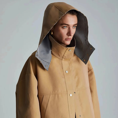 Step out in style with the Mckay Patchwork Detachable Hooded Midi Trench Coat—a playful mix of classic trench vibes and modern checkered patchwork flair. Its detachable hood lets you switch up your look while staying ready for surprise showers. The midi length offers just the right amount of drama, keeping you cozy and chic wherever you go. Perfect for those who love to blend function with fun!