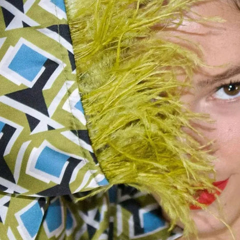 • Faux OstrichĀ feather cuffsĀ in chartreuse/acid green for a luxe accent