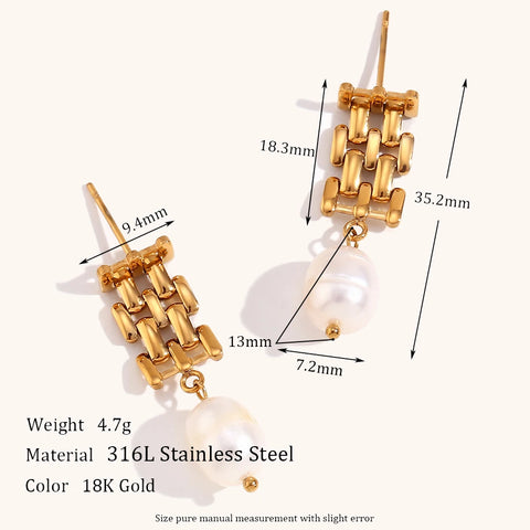 Material: Metal, 316L Stainless Steel, PVD,18K Gold Plated, Freshwater Pearl
