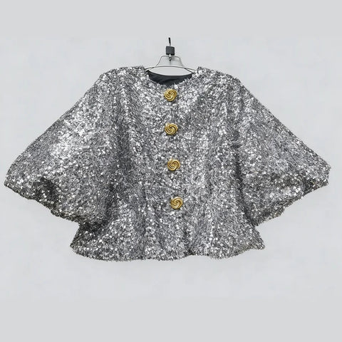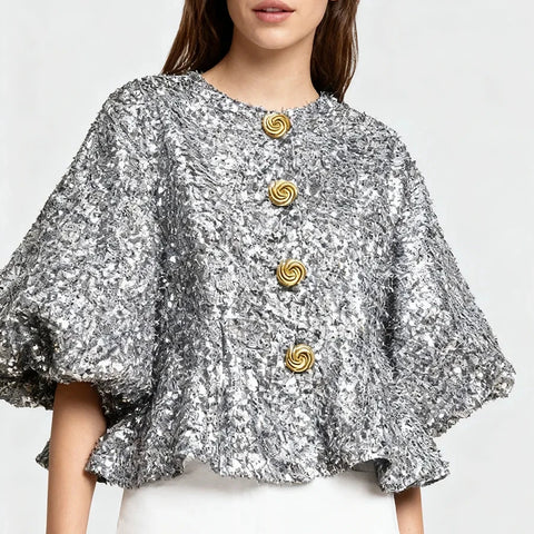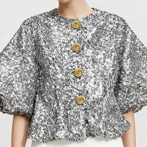 Natasha Sequin Puff-Sleeve Cropped Jacket – Modern Evening Sparkle