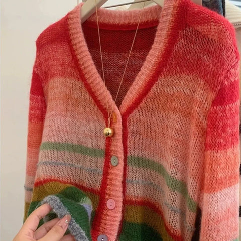 Sombre Rainbow Stripe Knit Cardigan
