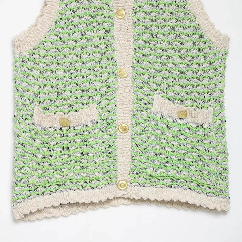 Add a fresh twist to your wardrobe with the Sue Mint Green Knit Vest. Its soft, breathable knit keeps comfort front and center, while the playful mint green shade brightens any outfit. Perfect for layering or wearing solo, this vest brings a fun pop of color and cozy vibes to your everyday style.