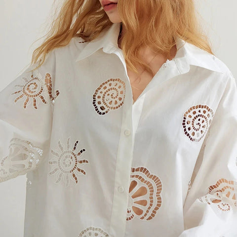 ✨ Maja Eyelet Embroidered Cotton Shirt — Effortless Coastal Charm